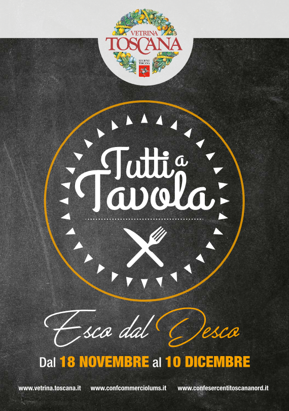 Tutti a Tavola: i ristoranti lucchesi incontrano i produttori del DescoAnche quest’anno in occasione del Desco i ristoratori lucchesi presentano “Tutti a Tavola…Esco dal Desco”, rassegna gastronomica realizzata nell’ambito del progetto Vetrina Toscana a Tavola, promosso dalla Regione Toscana e coordinato da Unioncamere Toscana, con la collaborazione della Camera di Commercio e dei Cat delle associazioni Confcommercio e Confesercenti.Sono 15 i ristoranti aderenti alla rassegna che presenteranno per tutto il periodo della manifestazione, ovvero dal 18 novembre al 10 dicembre, uno speciale menù a prezzo promozionale che pone al centro i prodotti del territorio.A testimoniare un legame sempre più stretto con il Desco, quest’anno ogni ristoratore ha deciso di coinvolgere un espositore della mostra mercato: tutti i menù proposti sono infatti preparati o accompagnati proprio con i prodotti che derivano dal gemellaggio con il produttore scelto, un modo per radicare sempre più la sinergia tra i produttori ed il sistema della ristorazione, luogo per eccellenza in cui i prodotti del territorio si esaltano.Proprio per questo sono previste delle cene degustazione in alcuni ristoranti, in cui la collaborazione tra ristoratore e produttore sarà sublimata e raccontata ai presenti, per una serata di vera e propria cultura enogastronomica di cui ricordiamo qui le due date: 24 novembre agli Orti di via Elisa ed all’Osteria del Bamboro e l’1 dicembre all’antica Locanda dell’angelo e da Satura.Un mix di offerta che può essere un elemento di attrazione anche per il turismo, sempre più attento alla qualità della proposta gastronomica come testimonia il crescente successo di eventi di questo tipo, a partire proprio dal Desco.Sui sito e sulla pagina facebook della Confcommercio Lucca in questi giorni è già scaricabile la brochure con l’elenco dei ristoranti ed i relativi menù ed abbinamenti.